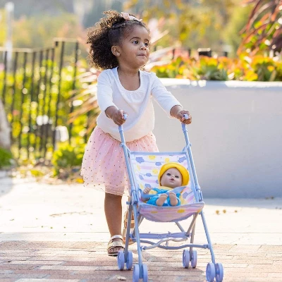 Adora PlayTime Baby Dino Boy is the sweetest baby boy doll to complement your nursery! He makes a great 1st baby doll for toddlers with his fun ensemble that is just too cute for adventures! He is dressed in a yellow jersey knit shirt and a blue dino-printed overall. To match his RAWR-some outfit, Dino Boy also wears a yellow bucket hat on top of his delicately hand-painted light brown hair that brings out the color of his beautiful brown eyes. Adora PlayTime Baby Dino Boy can also suck his thumb and arrives with a blue Adora baby bottle which completes this 13-inch soft baby doll set. Take this soft play doll home with Adora PlayTime Baby Bright Citrus and Sunny Days Doll Carrier Snuggle for an added fun in your playroom!Adora PlayTime Dino Boy is a 13-inch soft baby doll and weighs about 12 ounces. This soft play doll has a cuddly silky-smooth body and bean bag weighted bottom that makes him feel like a real baby, perfect for cuddles & kisses! He is carefully crafted from our exclusive GentleTouch vinyl which gives him a fresh baby powder scent. The best part of this boy doll is that he is 100% Machine Washable, so after a trip to the playground, store, or park, wash him, lay him flat to dry and he will be clean & ready again for play! Browse more of our PlayTime Babies and fill in your nursery with love! Makes a perfect gift for ages 1 and up.