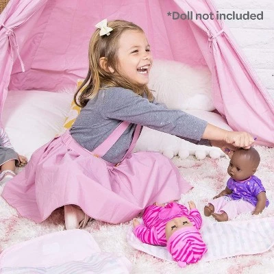 - DIAPERS FIT 13 INCH BABY DOLLS – Comes with 2 traditional diapers that fit baby dolls up to 13 inches in size, and a matching changing mat so she can put down her dolls while she changes their diaper
