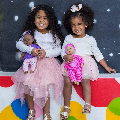 Looking ADORAble in her cute ensemble, Adora PlayTime Baby Wild at Heart will be your little ones favorite playtime buddy! This 13 baby doll has the sweetest doll face, button nose, and charming open-mouthed expression with delicately hand-painted hair. She is snug and ready with her leopard printed purple shirt, and pink pants with leopard knee patches. This soft doll also comes with a purple leopard ear headband that matches her outfit, and a small Adora baby bottle that fits her mouth when its time for a snack!Adora PlayTime Baby Wild at Heart is the best play doll for toddlers age 1 and up. It has a soft cloth body, smooth vinyl limbs, and weighed bean bottom, creatively crafted for learning toddlers and designed to encourage nurturing, pretend play. This cute baby doll can also suck thumb when shes ready for slumber. Her outfit is removable so you can change and dress this baby doll up for mix & match fashion play.PlayTime Baby Wild at Heart is a 13-inch soft baby doll set weighing around 12 ounces, she makes a perfect first baby doll for your little ones! The best thing about Wild at Heart is that she is 100% Machine Washable, Safety Tested, BPA Free, Award-Winning & Made with Love! Ages 1 and up.