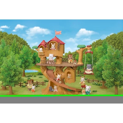 Welcome to the new Calico Critters Family Trip series! Critters love to play and swing at the Adventure Treehouse! There is so much to do, the Critters could spend all day here! Babies can ride on the log down the slide, play peek-a-boo and twirl on the swing! Includes 4 room treehouse, Koala baby, twirling swing, slide and tunnels. Connects to the new CC1884 Lakeside Lodge and CC1887 Baby Ropeway Park (both sold separately). Treehouse measures 17″ x 8.5″ x 15.5″. Calico Critters miniature dollhouses, playsets and figures are timeless and classic high-quality toys. For children ages 3 and up.