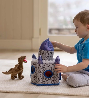 Noble castle with four colorful plush dragons make up the HearthSong Plush Dragon Play Set! It’s pure magic come to life and ready for imaginative fantasy play. Our soft, 12″H x 8″sq. castle has a door that opens and closes, and four windows through which a collection of four fantastical flying dragons are likely to emerge. Pop the 6″H dragons back inside and take this castle (with handle) on a never-ending imaginative adventure. Each dragon is a different color, and all include adorable sewn-in details that children love.
