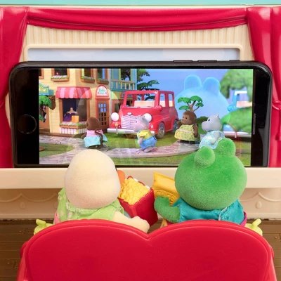It’s an evening of theatre and entertainment in Honeysuckle Hollow! Take your animal characters out to enjoy an evening of singing, dance or a play at the Li’l Woodzeez Honeysuckle Theatre playset. They can get cozy on the bench seating and settle in with some snacks – popcorn, pretzels or chocolate, slushies and water and pop on their 3-D glasses. Get the stage set with the reversible backdrop and let your Woodzeez take center stage. With the tripod set up and the camera rolling, it’s lights! Camera! Action! Let the magic begin. Use your imagination to explore the wholesome world of Honeysuckle Hollow! Li’l Woodzeez figurines sold separately. Recommended for 3 year olds and up.