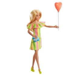 Barbie Color Reveal dolls deliver an unboxing experience full of surprises -seven of them to be exact, but you only get one !A doll with a colorful mermaid tail is guaranteed, but each doll’s look remains a mystery until revealed. The packaging is part of the fun -pull the strip to remove the outer layer and reveal a clear tube. Inside are a Color Reveal mermaid doll, whose full look is hidden behind the metallic blue rainbow-print coating, and four bags with surprises. Remove everything and fill the tube with warm water, then insert the doll and swirl around. The water turns a shimmery sea blue, and when the doll is pulled out, their features are revealed! Each mermaid doll represents a different color of the rainbow with long hair and a pattern on the tail, but the surprises continue…open the bags to discover a fin, wrist cuffs, crown and sponge-comb accessory. Color-change effects on the doll’s arms and top add to the surprise and fun. Each series has a unique theme -these Color Reveal dolls are all about rainbows and mermaids. Use the tube to store these and other favorites. Which doll will you reveal Kids can collect them to mix and match accessories and expand the possibilities! Each sold separately, subject to availability. Dolls cannot stand alone. Colors and decorations may vary.