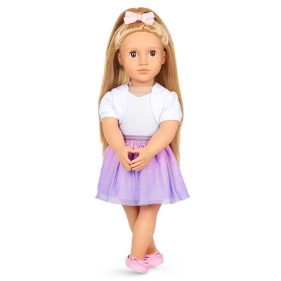 - 18-inch doll Thea: lovely hazel eyes that open and close with long, brushable blonde hair that’s fun to style!