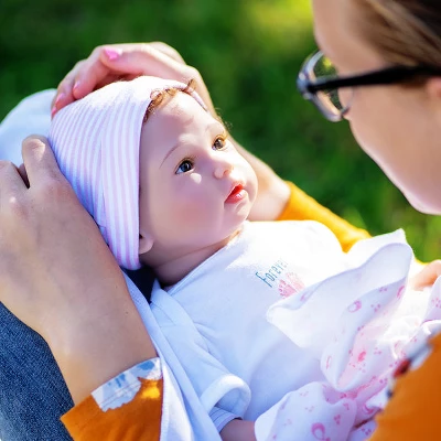 Forever Yours Treasure is lovingly sculpted by internationally recognized artist Mayra Garza. This realistic baby doll is crafted from our SoftTouch Vinyl giving her a delicious, fresh baby powder scent and snuggly-soft skin with a weighted cloth body for a wonderfully lifelike experience. Intended for reborn doll collectors aged 3+.