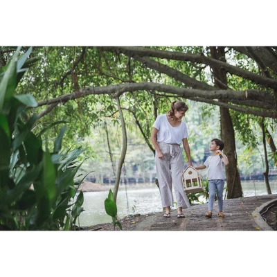 Design your own space with the unique compact but spacious PlanToys Slide N Go Dollhouse! The dollhouse is portable for carrying around and comes fully assembled. It is made up of 3 units which can be arranged in various ways by sliding and setting in various positions. It also comes with furniture and features a chandelier, 2 sliding doors, and sets of modern furniture for a bedroom, a living room, a bathroom, a kitchen and a dining room. The Slide N Go Dollhouse comes with 20 pieces in total