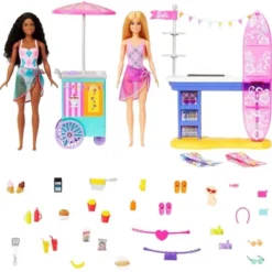 Barbie Beach Boardwalk Playset With Barbie Brooklyn & Malibu Dolls, 2 Stands & 30+ Accessories