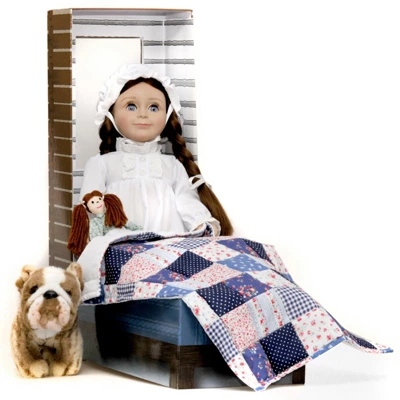 Introducing our officially licensed Little House on the Prairie Laura Ingalls 18 inch Doll inspired by the treasured Laura Ingalls Wilder stories. Designed by highly skilled artists to embody the beloved character’s spirit. From expressive, tilt-close eyes to soft pigtails and rosy cheeks, Laura’s kind-hearted and energetic nature comes through the moment you catch her eye. Laura comes in an eyelet ruffle-front nightgown and cap, an adorable rag doll, a pillow, patchwork quilt and a clever keepsake box that converts into a cozy bed which tucks in a log cabin backdrop, complete with window! 6 piece set makes an instant heirloom collection. High quality and unsurpassed detail – Laura features vinyl shoulders and a soft poseable body. Doll measures 18 inch high. Sized for play with other 18 inch dolls and 18 inch doll accessories. Exclusively made by The Queen’s Treasures, offering the highest quality 18 inch Doll Furniture, 18 inch Doll Clothes, 18 inch Doll Shoes & 18 inch Doll Accessories! Safety Tested!